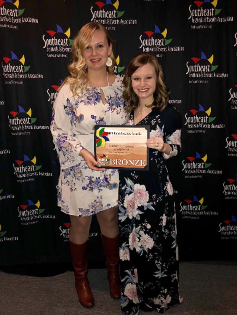Oak Grove Tourism and Convention Commission Event Coordinators Whitney Stewart and Cassie Howe accepted the bronze SFEA Kaleidoscope Award for Best Children’s Programming for their Annual Butterfly Festival.