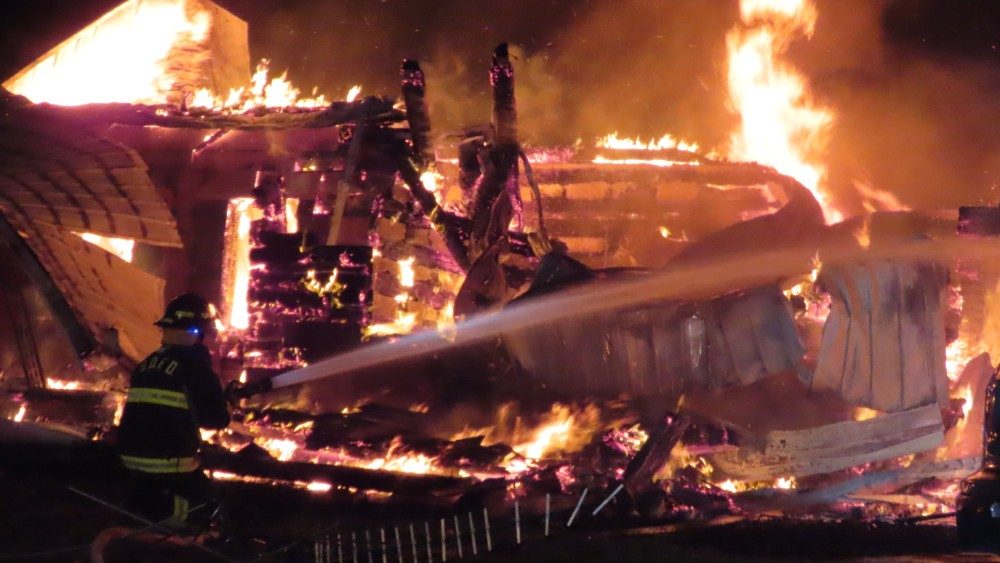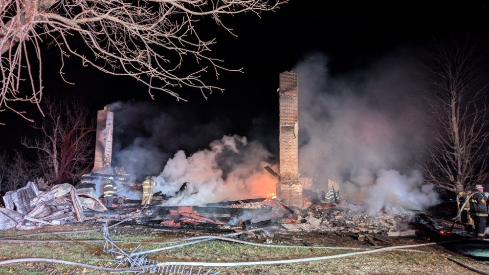 Square Deal firefighters say they were called at 1:23 am by a neighbor about a fire and arrived to find the home fully engulfed in flames, with the second story collapsed.