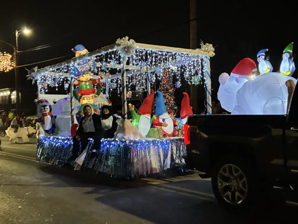 Best use of lights and $200 went to Shady Lawn Nursing and Rehab Center for their Elvis, Penguins, and Polar Bears at the North Pole. Best use of Theme and $200 went to Burgess Dump Services and Consignment World’s 1940 Chevy truck and float.